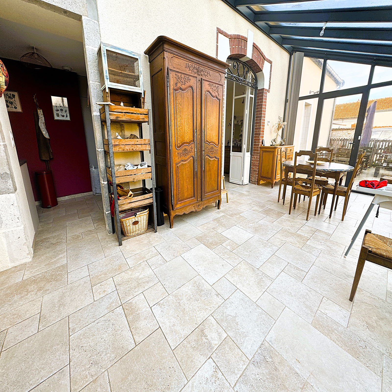 Maison de coeur de ville entièrement rénovée du sol au plafond avec matériaux de qualité (maître d'œuvre et professionnels tout corps de métier se sont occupés de la rénovation) comprenant une vaste entrée donnant sur une magnifique véranda avec vue sur le jardin, une cuisine aménagée et équipée, un salon avec cheminée ainsi qu'une chambre disposant d'une salle d’eau, et WC. Le rez de chaussée dispose également d'un plancher chauffant jusque dans la véranda. À l’étage, une mezzanine surplombe le salon-séjour et dessert 3 chambres, palier, salle d’eau et WC, le tout sur un magnifique terrain comprenant portail électrique, dalle béton en attente d'un garage ou carport pour stationner votre véhicule, dépendance et ancien pigeonnier. Le terrain de 798 m² est clos et arboré !