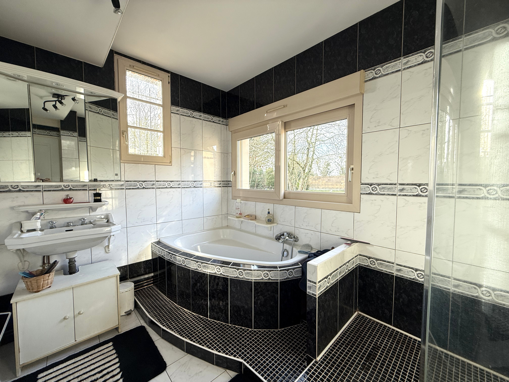 L’ensemble est édifié sur un vaste terrain clos et arboré de 2 676 m², offrant la possibilité de revendre une partie du terrain constructible, déjà divisée, de 866 m².