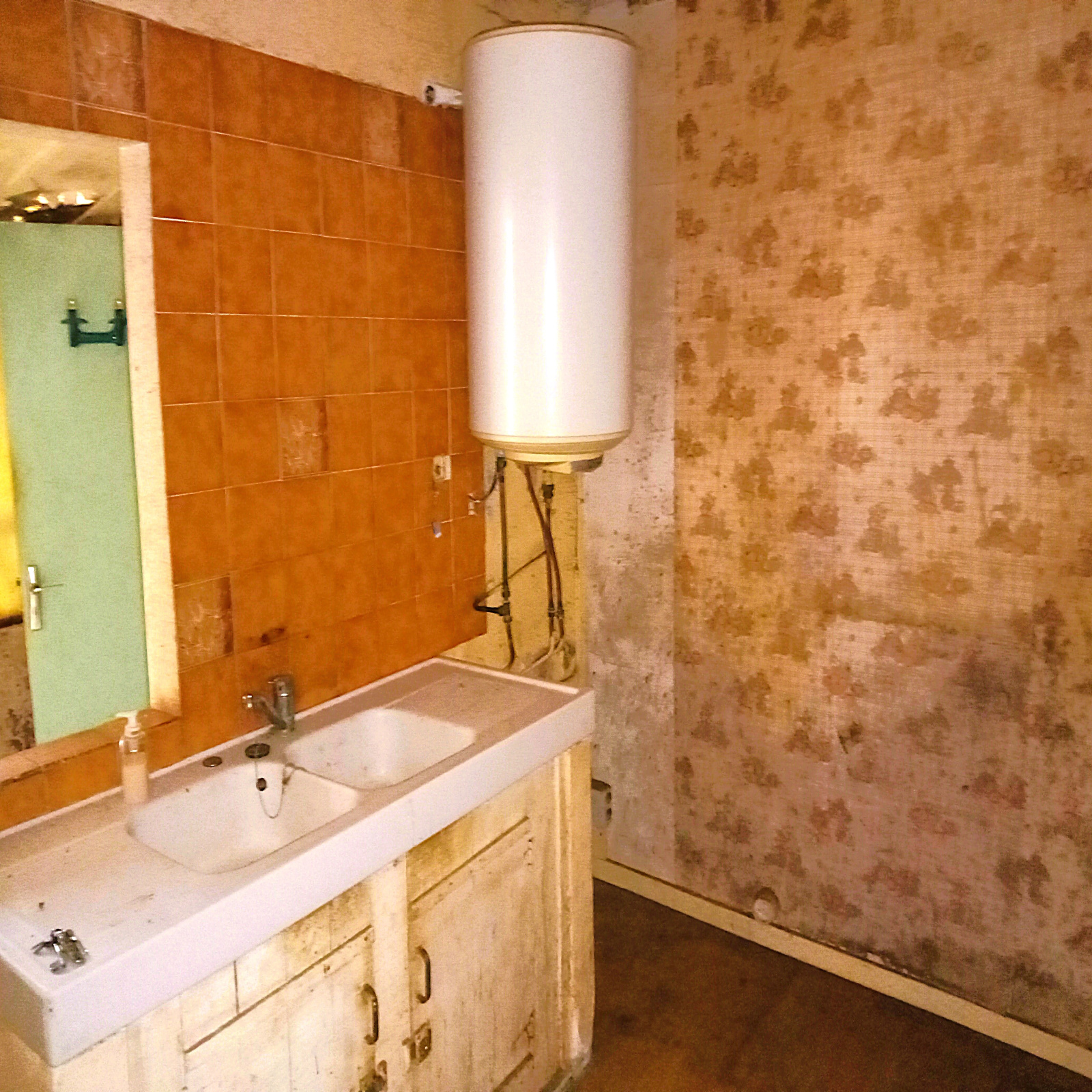 Maison à rénover comprenant un couloir , un salon / séjour , une cuisine , une salle de bain avec wc . Une cave , terrain clos .