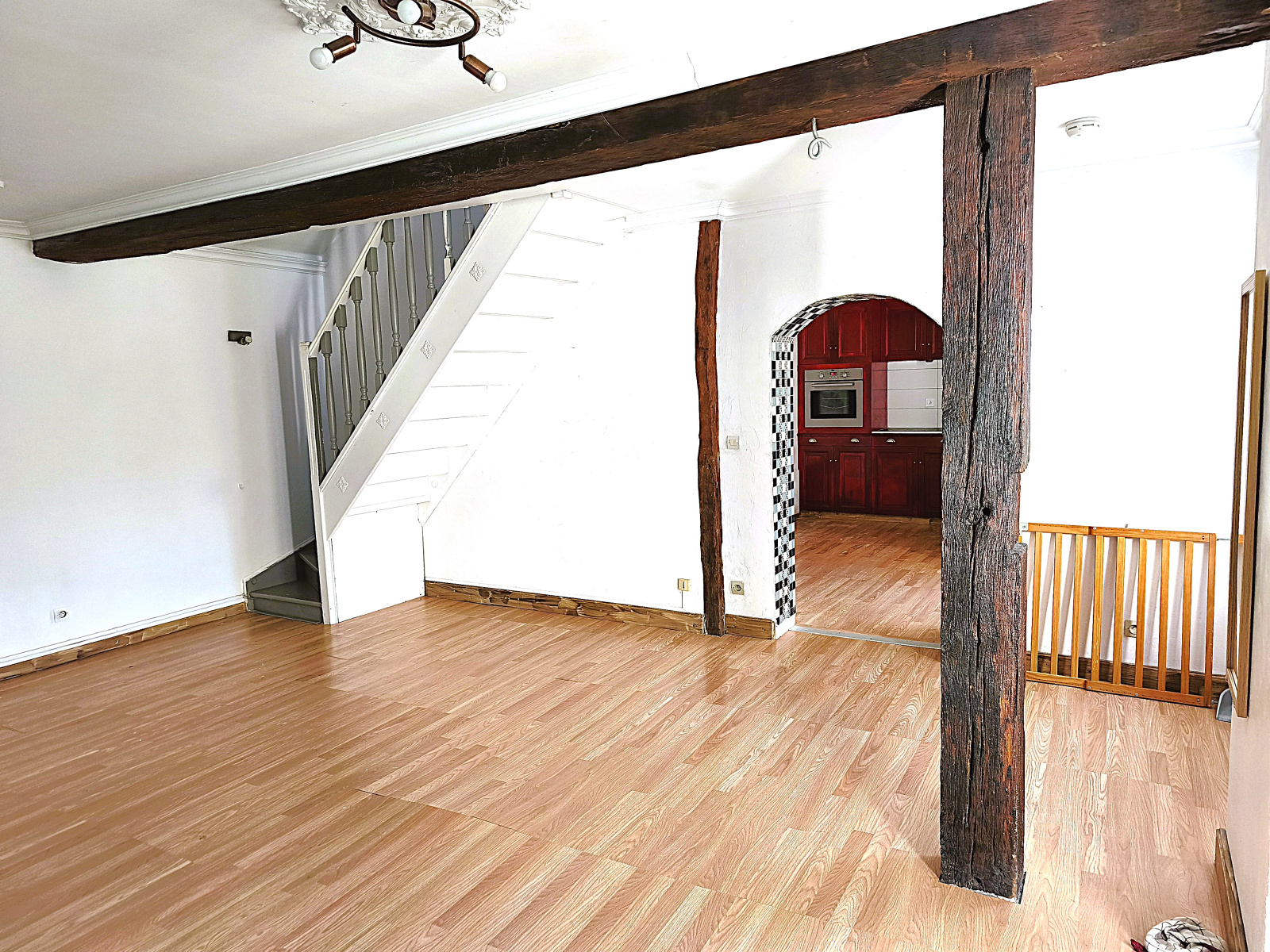 A l’étage un palier dessert trois chambres et une salle de bain le tous sur un terrain clos de 380 m2 sans vis à vis.