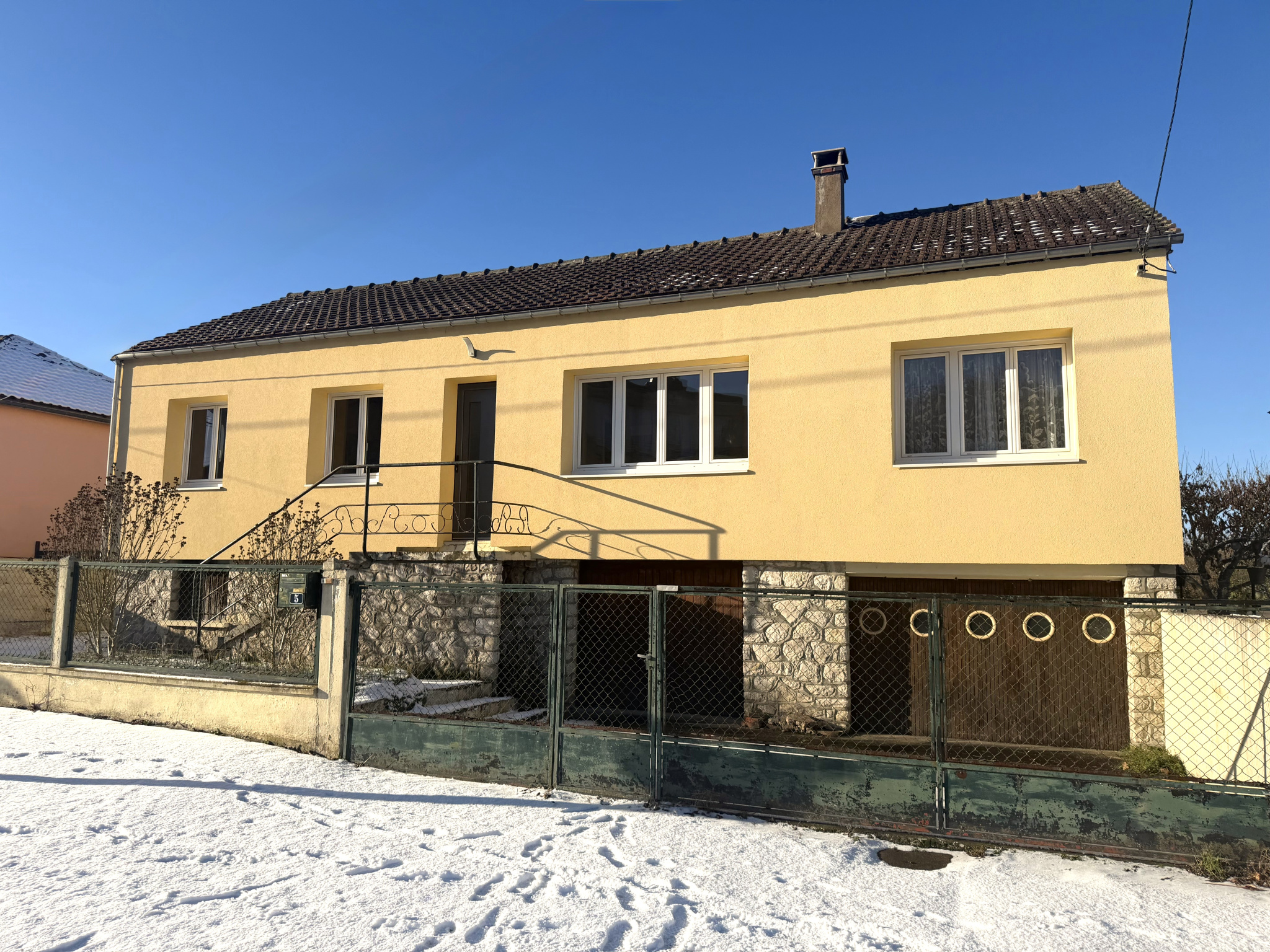 Elle se compose d’une entrée desservant une cuisine, une salle à manger, ainsi qu’un salon lumineux avec cheminée insert, une salle d’eau et un WC séparé. La partie nuit offre trois chambres avec de beaux parquets. À l’extérieur, vous profiterez de deux garages en sous-sol, d’un abri de jardin, ainsi que d’un terrain clos et arboré de 660 m².