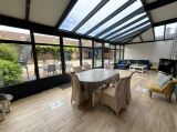 Idéalement située à CHÂTEAUNEUF, au coeur du centre-ville, à proximité immédiate des commerces et écoles (à pieds), vous serez conquis par les volumes et l'environnement que vous offrent cette superbe maison bourgeoise. Au rez-de-chaussée, une entrée s'ouvre sur, de part et d'autre, deux charmants salons avec cheminée et poêle à bois, une grande cuisine ouverte aménagée et équipée et son cellier ainsi qu'un bureau avec WC. Vous profiterez d'une lumineuse et spacieuse véranda aménagée en pièce de vie vous donnant accès à une agréable terrasse. À l’étage, un palier dessert quatre belles chambres dont une suite parentale avec salle d'eau privative, une salle de bains avec double-vasque ainsi qu'un WC. Édifiée sur un terrain clos de mur de 1579m², un atelier et deux belles granges dont une de plus de 200m², complètent ce bien. Le + : vous bénéficierez d'un rendement locatif avec une maisonette aménagée et actuellement louée. RARE - BIEN D'EXCEPTION !