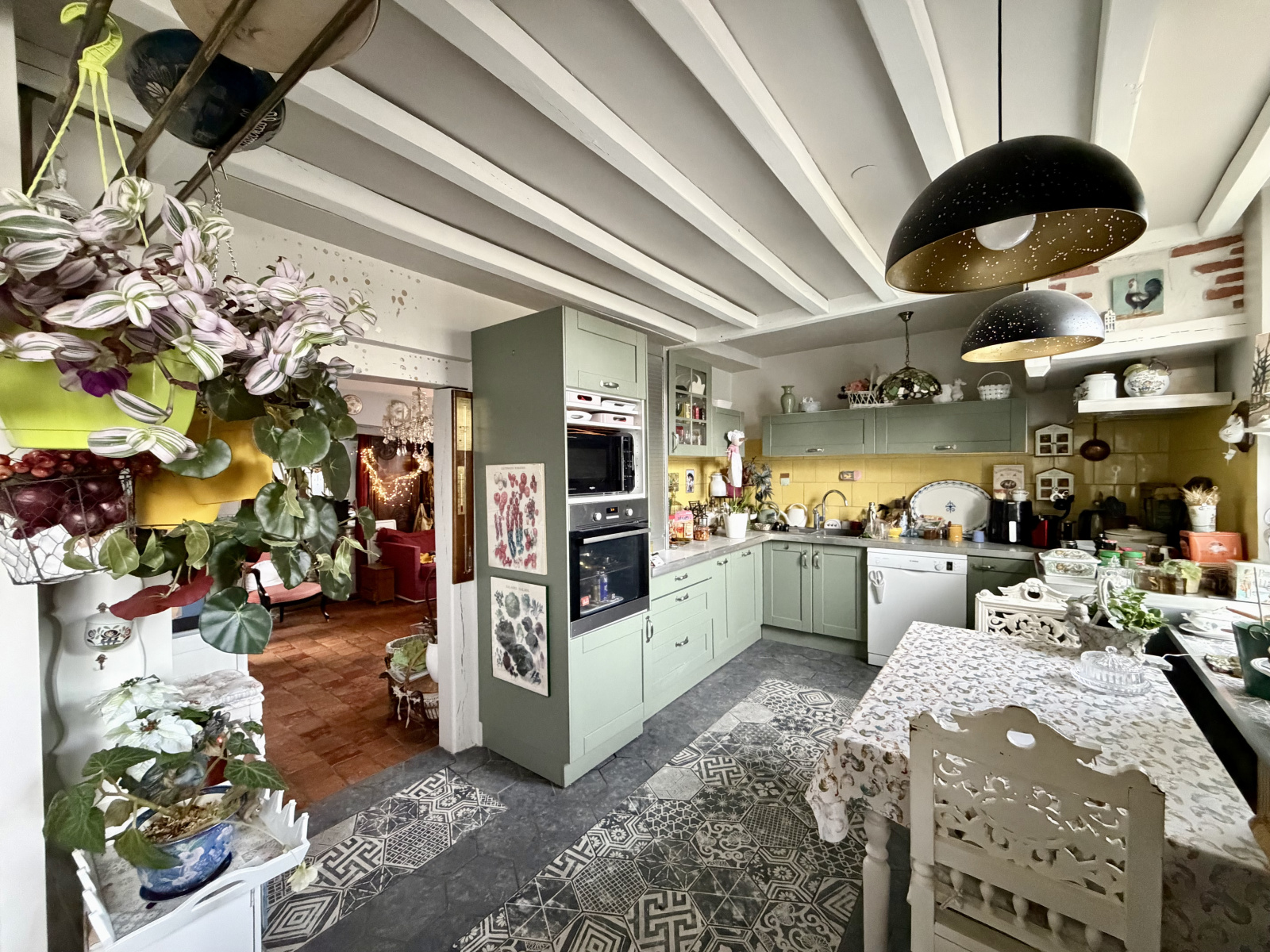 Dès l’entrée, vous découvrirez une maison authentique et chaleureuse comprenant une salle à manger conviviale, un salon plein de caractère avec tomettes au sol et cheminée, une cuisine aménagée, une arrière-cuisine fonctionnelle ainsi qu'une salle d'eau avec WC.