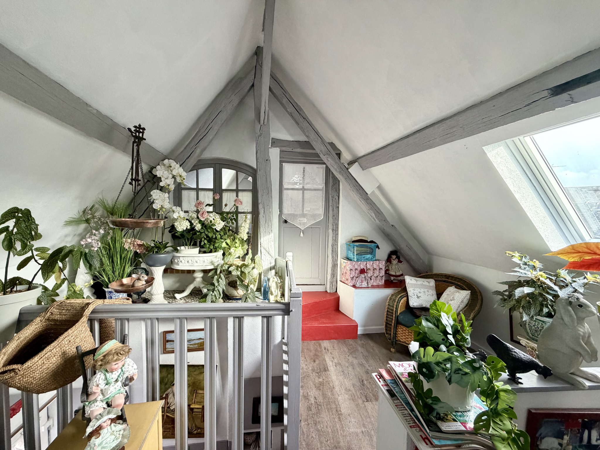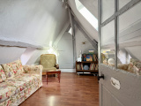 À l’étage, un agréable palier dessert deux chambres, dont l’une dispose de sa propre douche, ainsi qu’un bureau, un dressing et un WC indépendant.