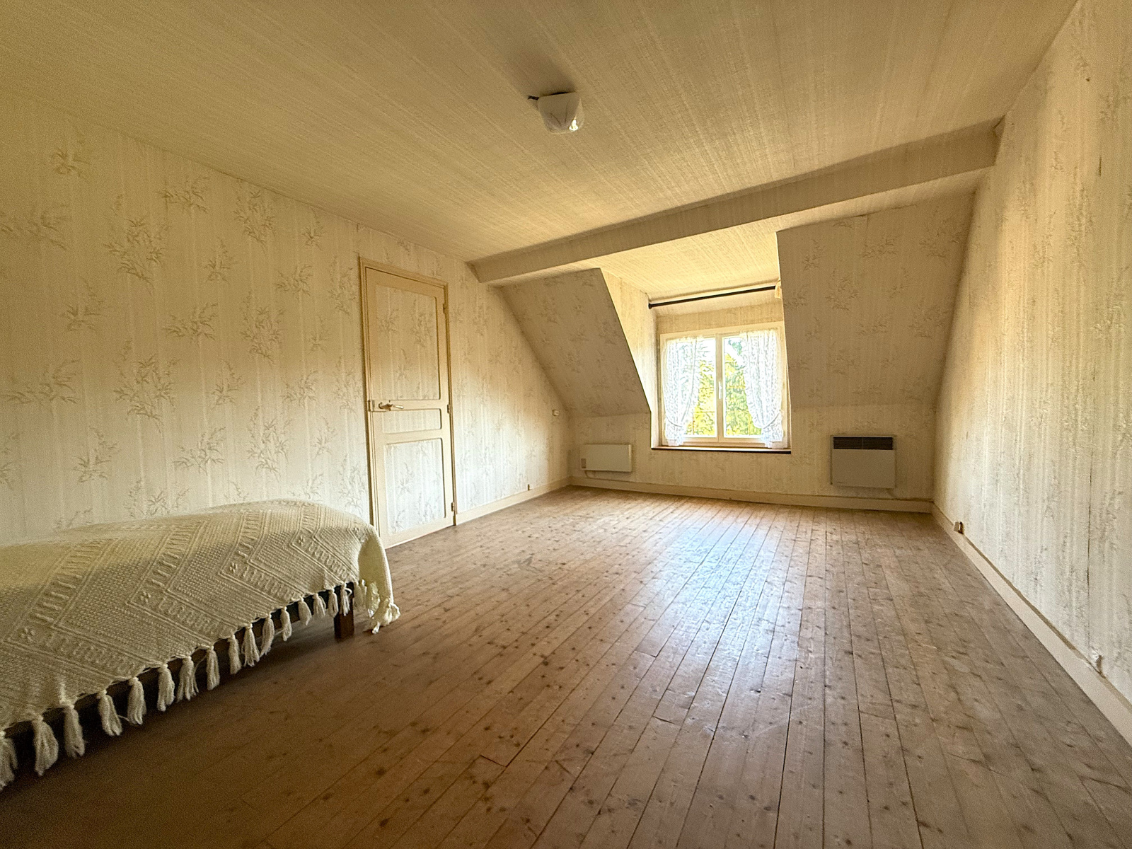 Le rez-de-chaussée se compose d’une agréable pièce de vie avec salon/salle à manger, agrémentée d’une cheminée et de poutres apparentes, d’une cuisine aménagée et équipée, d’une chambre, d’une salle d’eau ainsi que de WC indépendants. À l’étage, un palier dessert une première chambre avec WC sanibroyeur et lavabo, une seconde chambre avec de nombreux rangements. Un grenier aménageable offre la possibilité de créer un espace de vie supplémentaire.