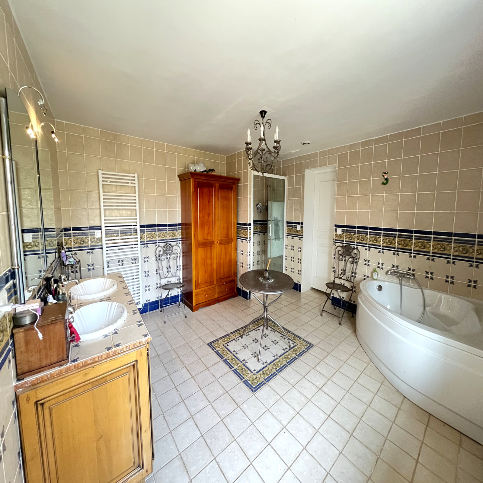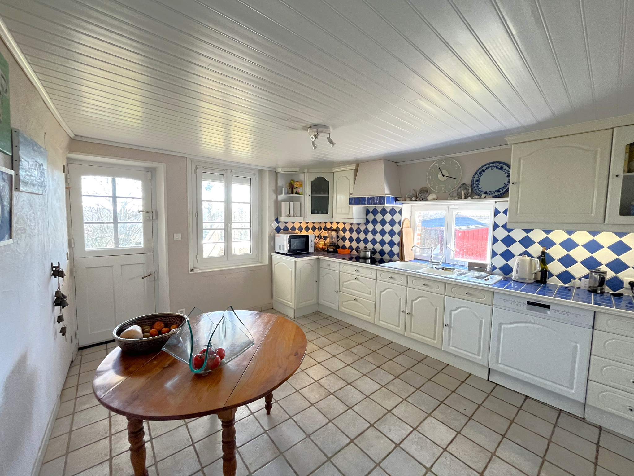 À quelques minutes de TRÉON, dans un village de la Vallée de la Blaise, vous serez séduits par cette charmante maison ancienne parfaitement entretenue vous offrant de beaux volumes. Elle comprend au rez-de-chaussée, un vaste et lumineux salon-séjour agrémenté d'une cheminée insert, une cuisine dinatoire aménagée et équipée, une salle à manger avec poutres apparentes, une buanderie avec WC ainsi qu'une belle suite parentale avec sa salle de bains privative. À l'étage, un palier dessert trois chambres récemment rénovées et une salle d'eau avec WC. Édifiée sur un terrain clos et arboré de 1884m², vous profiterez d'un agréable jardin, sans vis-à-vis, avec piscine.